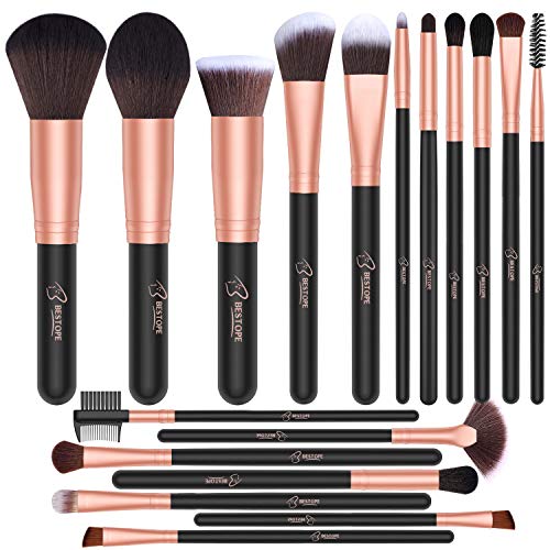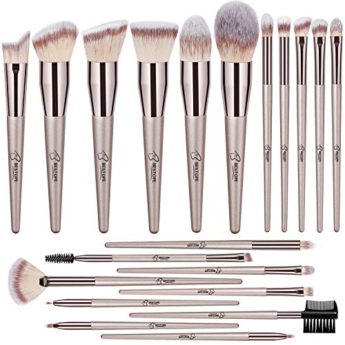 BESTOPE 18 Pcs Makeup Brushes Premium Synthetic Fan Foundation Powder Kabuki Brushes Concealers Eye Shadows Make Up…